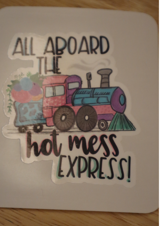 All abroad the Hot Mess Express Train Clear WATER SLIDE