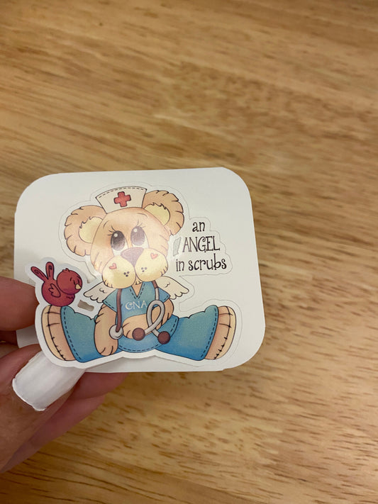 An Angel in Scrubs STICKER, Cute Bear CNA Sticker, Cute Medical Bear Sticker, Cute Medical Bear in Scrubs Sticker