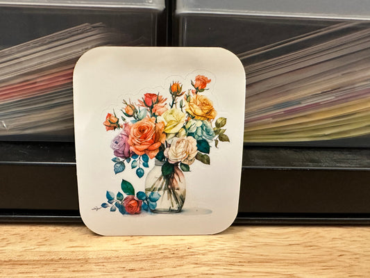 Set of 2 Rose Vases Stickers, Multi colored Rose Stickers, Bundle of two roses vase stickers, BOPP Label Paper