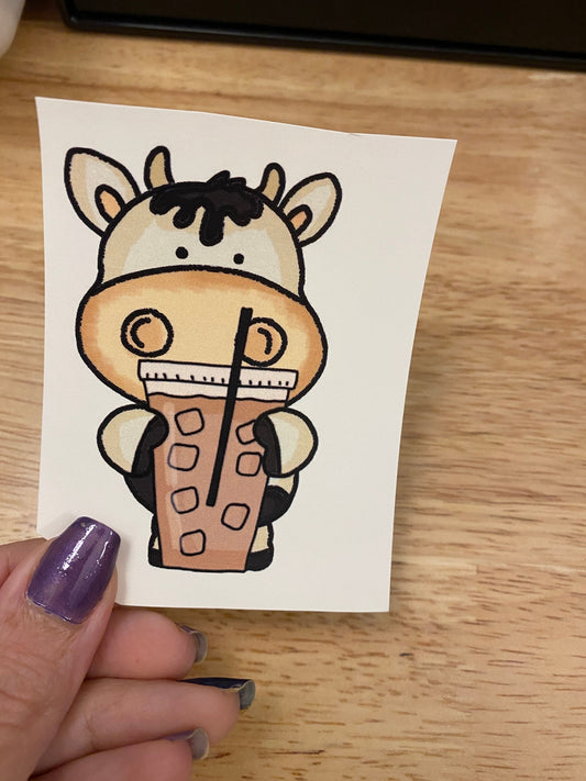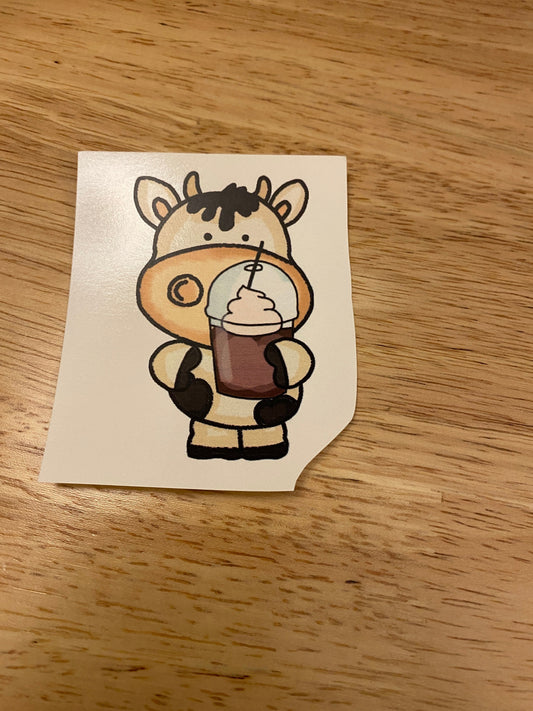 Spotted Cow with Iced Coffee Clear WATER SLIDE, Unique Tumbler Transfer, Cow with Coffee Waterslide