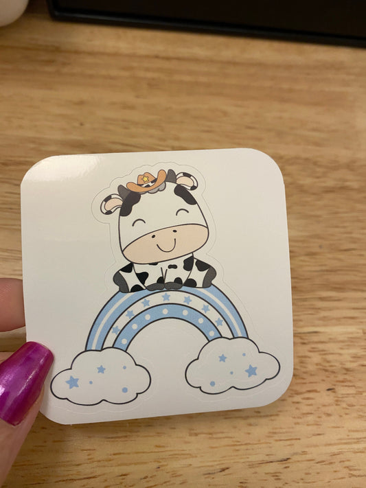 Spotted Cow on the clouds Sticker, Cow in the clouds Sticker, Cute Cow Sticker, Cow with rainbow clouds
