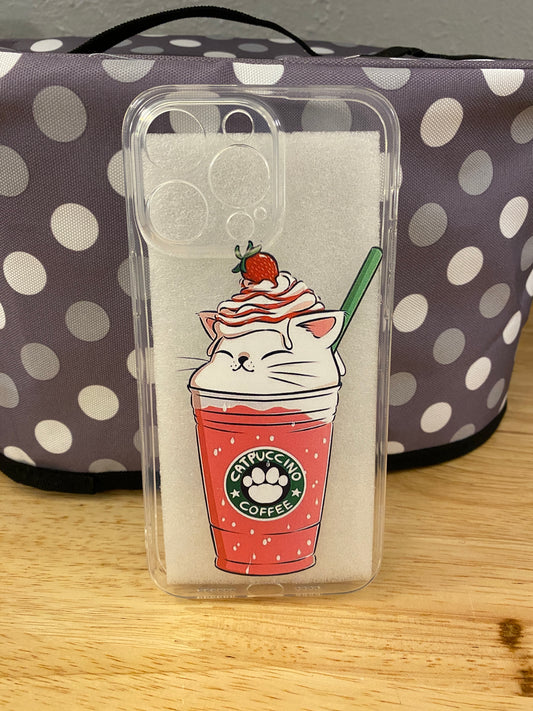 Strawberry Cat Catpuccino Coffee Starbucks IPhone case with matching sticker