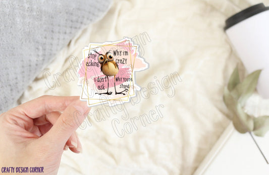 Stop Asking Why I'm Crazy I don't Ask Why You're Stupid STICKER, Halographic option, Crazy Chicken Sticker