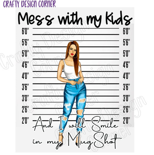 Waterslide Mess with my kids and I will smile in my Mugshot Clear Burnette ,Unique Tumbler Transfer, MugShot mom, protective mom waterslide