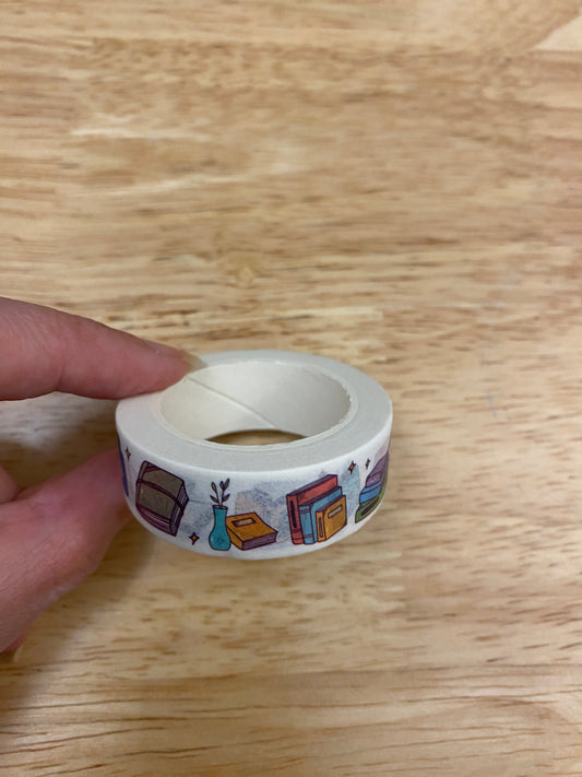 Big Roll of Books with a white kitty cat Washi Tape, Shelf of Books Washi Tape roll, Office Wahi tape, Adhesive Masking Tapes
