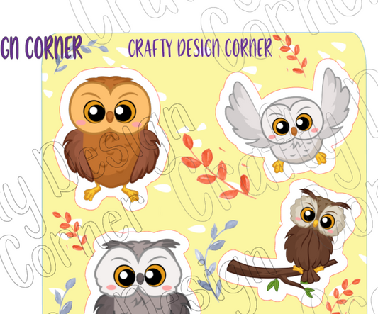 1.5" Owl Sticker Sheet, Bird Stickers, Cute Owl Sheet