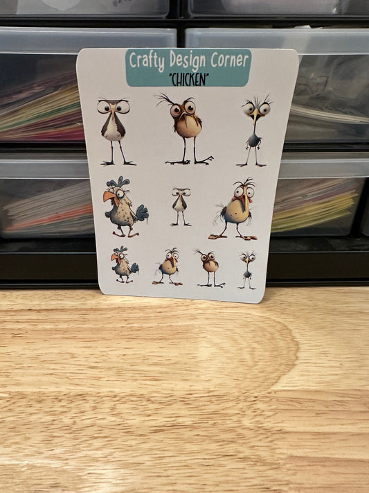 1.5" Crazy Chicken Sticker sheet, Chicken sheet, Crazy Eyed Chicken Sheet Stickers
