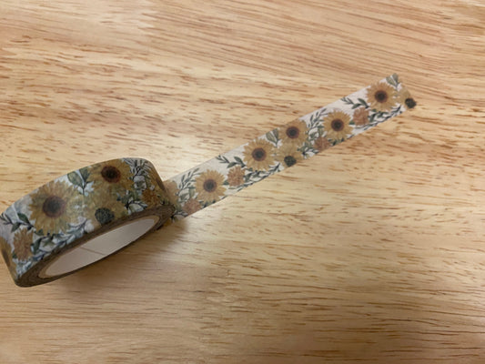Big Roll of Sunflower Washi Tape, Flower Washi Tape roll, Sample Washi Tape, Adhesive Masking Tapes, Floral Washi tape