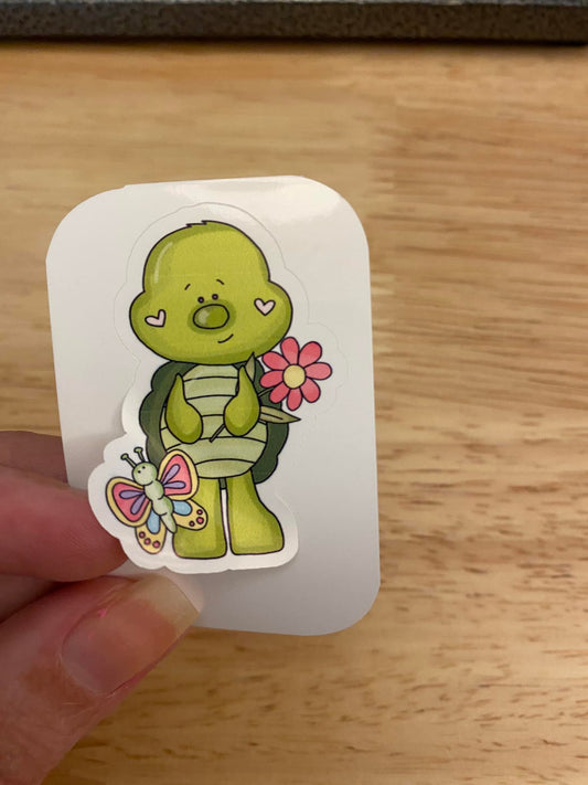 Boy Turtle holding Flower STICKER