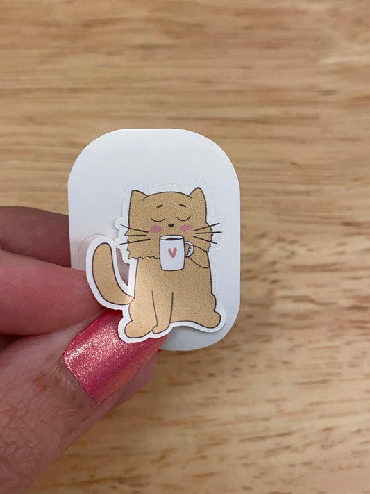 Brown Cat with Coffee Sticker