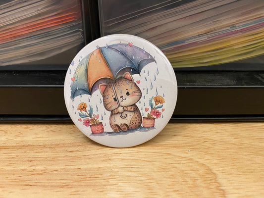 Brown Tabby Cat with Umbrella 2.25" Button Pins or 1.25" Button options, Back Pack Decoration, Cat Pin, Cat designed pinback