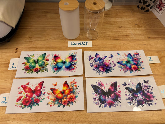 Butterflies Glass Tumbler, Clear or Frosted Tumblers option