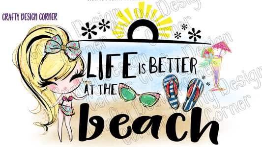 Burnette Hair Life is Better at the Beach PNG/JPeg Download