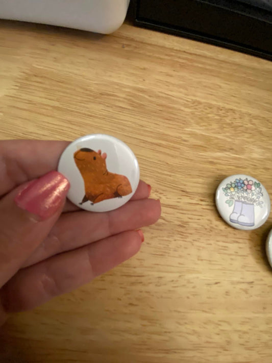 Capybara Button Pin 2.25" Button Pins or 1.25" Button options
