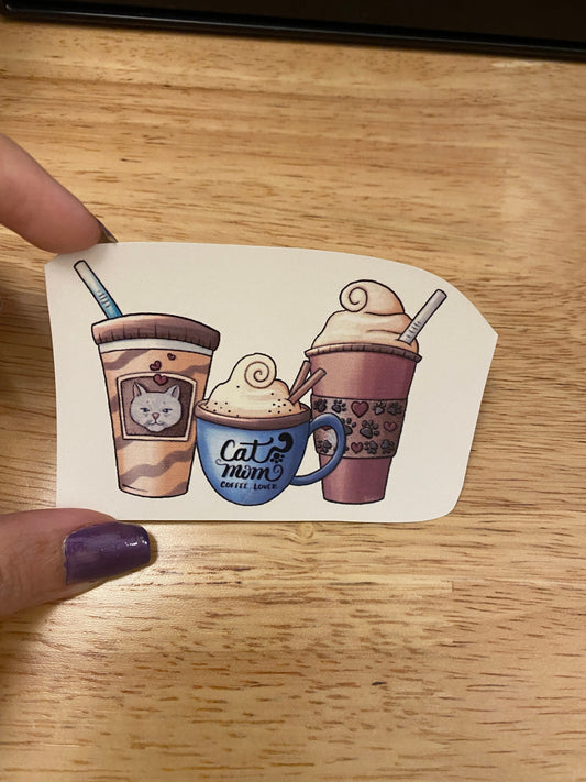 Cat Mom Coffee Lover Latte line up Clear WATER SLIDE