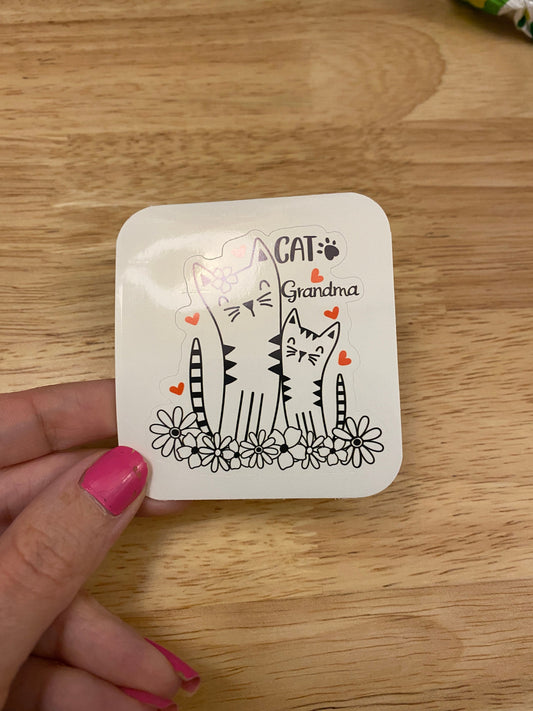 Cat Grandma STICKER, Cat with flowers Sticker, Holographic option, Cute Cat Design Sticker