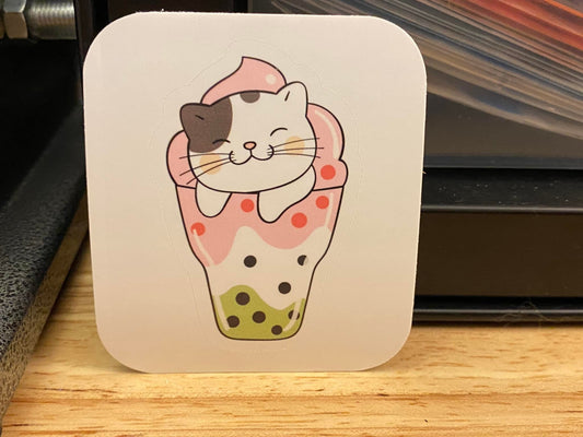 Cat in Boba Sticker, Cat Sticker, Cute Cat Sticker, Tea Cup Cat Sticker, Coffee and Cat sticker, Teacup cat Sticker, Tux Cat in cup