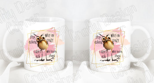 Custom Stop Asking Why I'm Crazy I don't Ask Why You're Stupid Mug, Custom coffee mug, Chicken Mug, Crazy Chicken Custom Mug