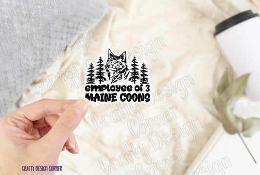 Employee of 3 Maine Coons Sticker, Maine Coon Employee sticker, Maine Coon Sticker, Cat mom sticker, Cat Dad sticker, cat mom