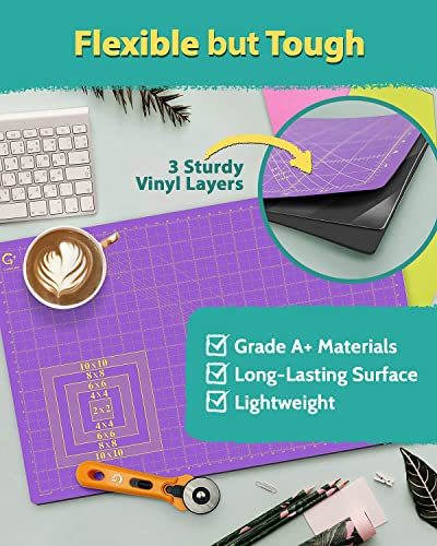 G+ Self-Healing Cutting Mat, True A3 12 x 18" (13 x 19"Full) Purple/Black Eco-Friendly Double-Sided 3-Ply Craft Cutting Board for Sewing Fabric Crafts Hobby Scrapbooking and All Arts Projects