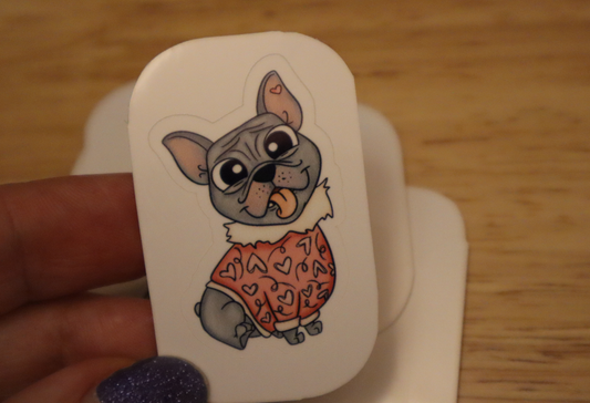 French Bulldog with hearts STICKER