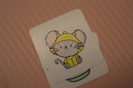 Grey Mouse with Rain Jacket STICKER, Cute Mouse sticker, Laptop sticker, Holographic option, Grey Mouse