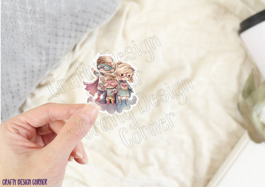Hero Family Sticker, Cute Family of Heros sticker, Halographic option