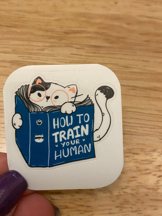 How to Train your Human Cat Sticker, Cute Cat Sticker, Cat reading, Cat training Humans sticker