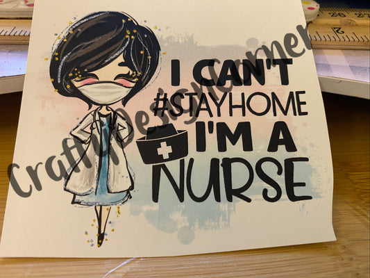 I can’t Stay Home I’m a Nurse Clear WATER SLIDE
