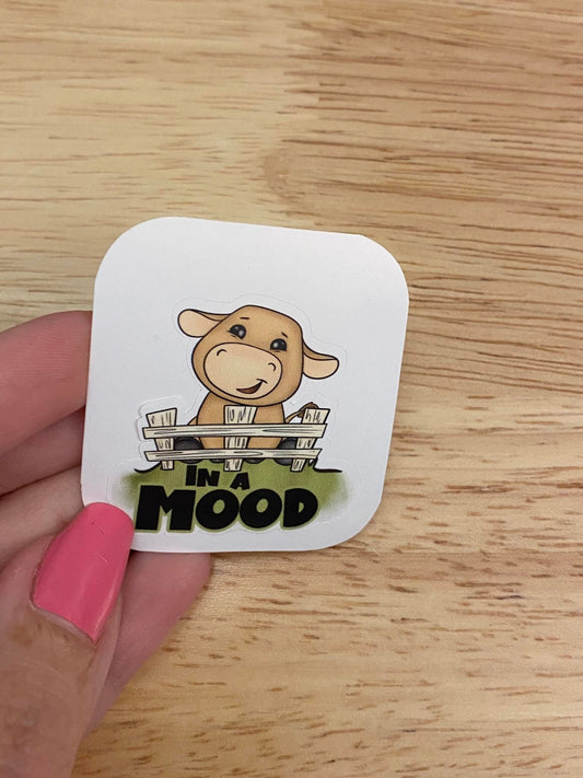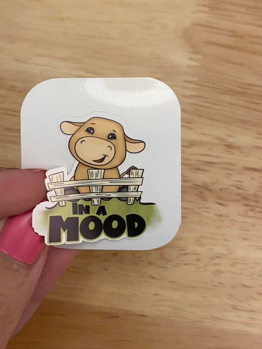 In a Mood Sticker, Cow Sticker, in the mood sticker, cow in pasture sticker, cute cow sticker
