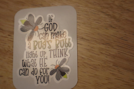 If God can make a Bugs Butt Light up, Think what He can do for You Car Decal, Lightening Bug