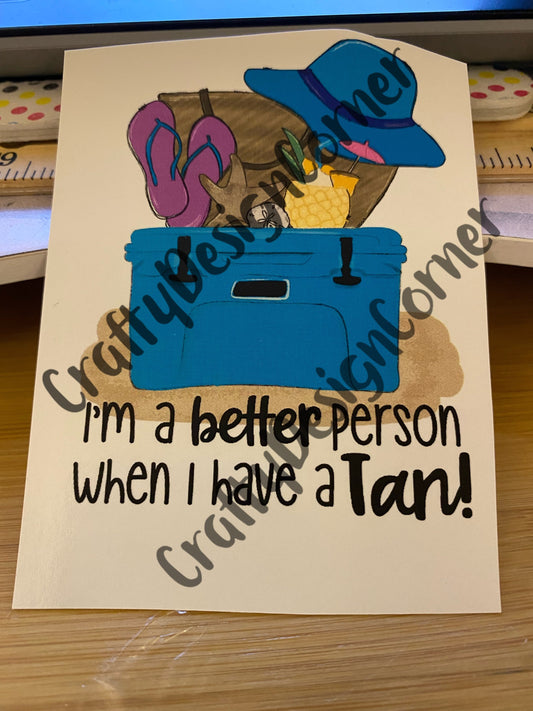 I’m a better person when I have a Tan Clear WATER SLIDE, Unique Tumbler Transfer, Vacation Transfer