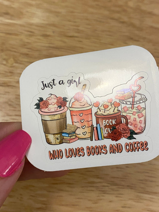 Just a Girl who loves Books and Coffee Sticker, Cute Books and Coffee sticker, Coffee Cup, Drink Coffee, Love Books and Coffee sticker