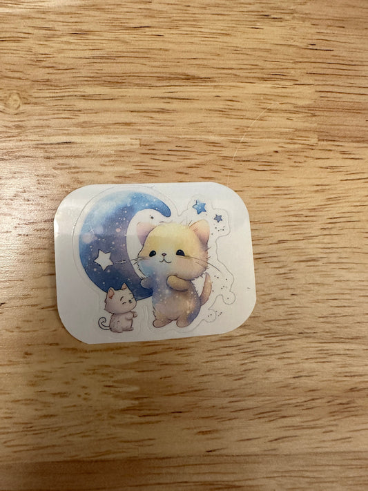 Kitties on the Moon STICKER, Cute Cats with Moon sticker, Halographic option