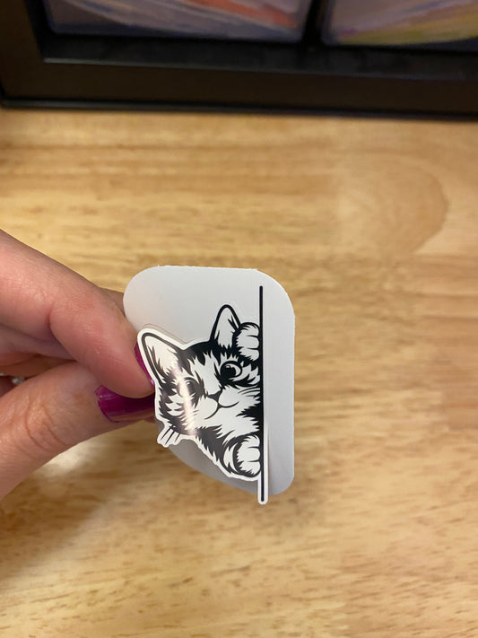 Kitty playing with Sunflower Sticker, Grey Cat with sunflower Sticker, Cat sticker, Cute Cat Sticker, Cat playing
