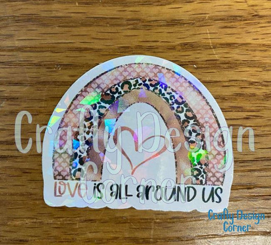 Love is all Around Us Sticker, Love Sticker, Love with Rainbow Sticker, Holographic Sticker, Heart with RAinbow Holographic Sticker