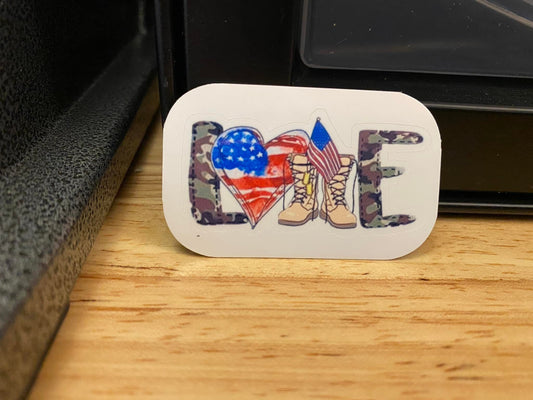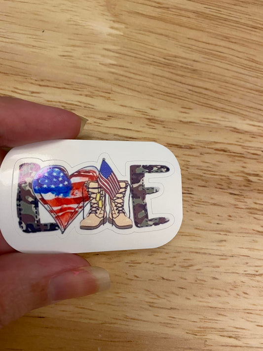 Love Military with Boots and Flags STICKER