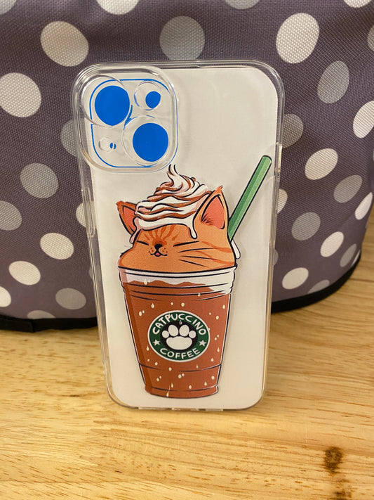 Mocha Cat Catpuccino Coffee Starbucks IPhone case with Matching Sticker, Brown Coffee Starbucks IPhone case