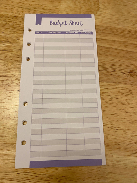 Monthly Cash Envelope Budget Insert for A6 Binders