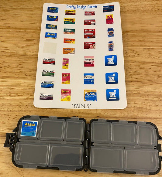 Pill Box with Labels Kit, Pill container with sticker labels to apply, Labels with container for medication, Kit for Pills, Pills travel kit
