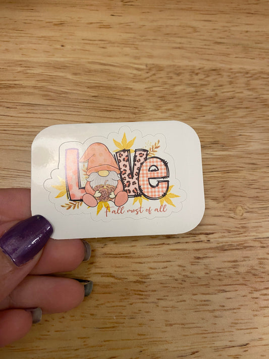 Pink Fall Love Gnome STICKER, Autumn Sticker, Holographic option, Cute Love Design Sticker, Gnomie Love design