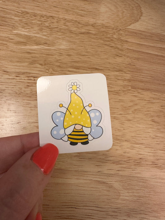 Pigtails Bee Gnome with Daisy Sticker, Daisy with Gnome Sticker, Gnome and Flowers Sticker, Cute Gnome with Bee outfit