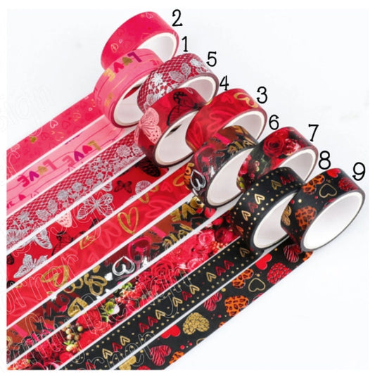 Pretty Gold Foil Heart Washi Tape roll, Love Washi Tape Roll, Rose Washi Tape Roll, Elegent Washi Tape Roll, Black and Red Washi