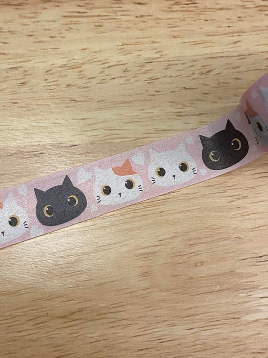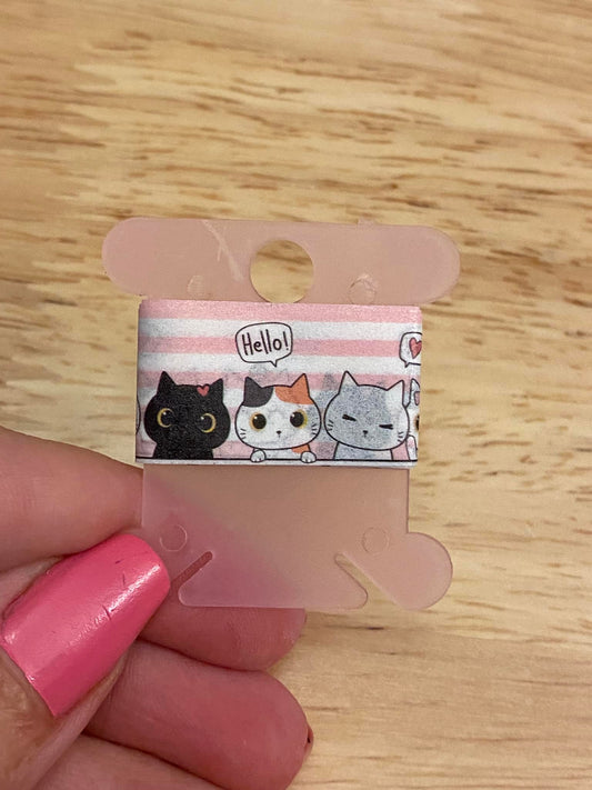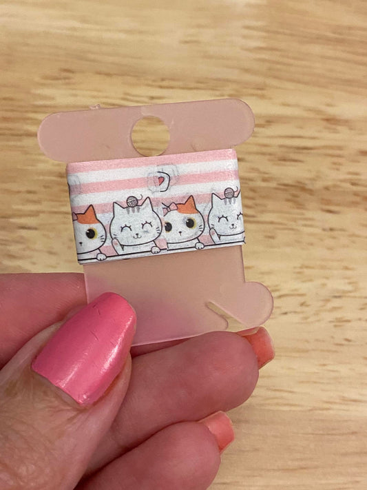 Sample Card of Kawaii Cat with pink Strips Washi Tape