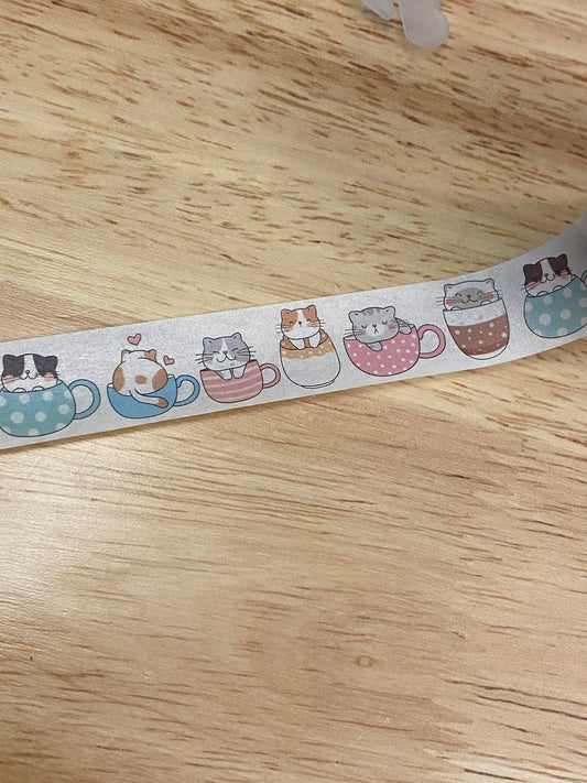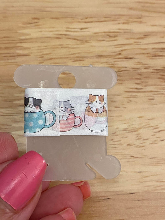 Sample Card of Kawaii Tea Cup Cats Washi Tape