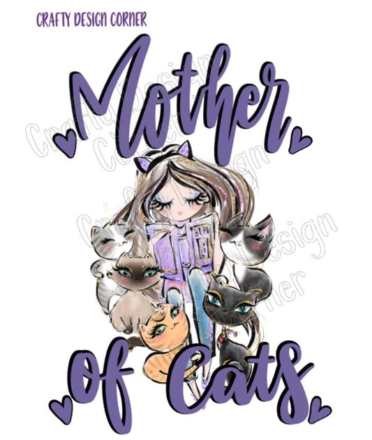 Cat Lady Mother of Cats Digital Downloads, Cats and reading Png / JPeg Design, Cat Lady with Books clipart, Cute cat clipart, Cat Png