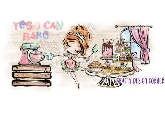 Cute Red Headed Baker Clipart Yes I can Bake Design JPEG/PNG DIGITAL Download