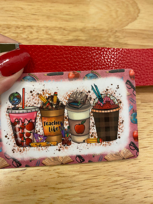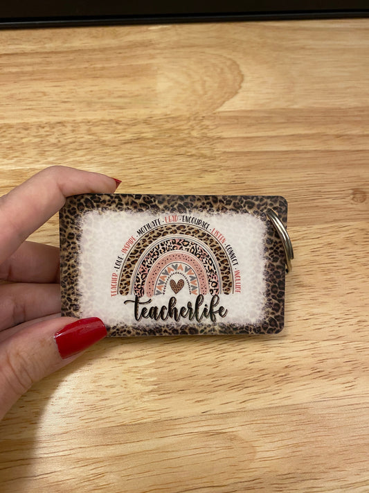 Teacher Life Key Chain with Red Faux Leather strap Double Sided