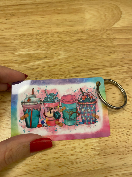 Gnome Nurse Key Chain with Mint Faux Leather strap Double Sided