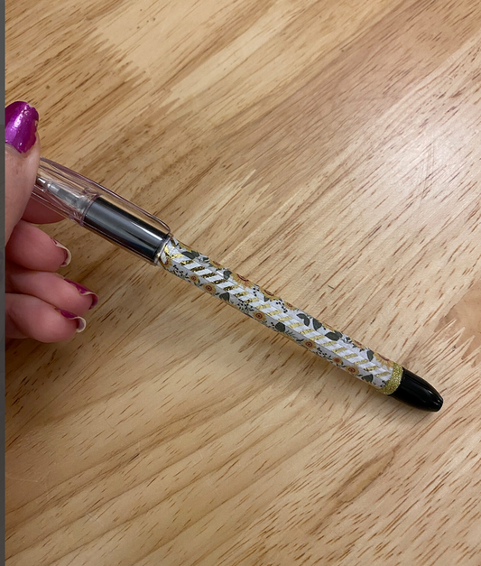 Sunflower Print pen, Cute Sunflowers on pen, Black and white criss cross design with Sunflowers on it pental rsvp pen